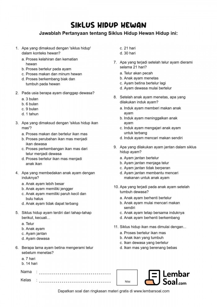 Bayangkan seperti kalian, saat bayi kalian mungil, lalu tumbuh menjadi anak-anak yang sekarang lebih tinggi dan lebih pintar. Hewan juga begitu, mereka lahir atau menetas dalam bentuk yang berbeda dari saat dewasa.