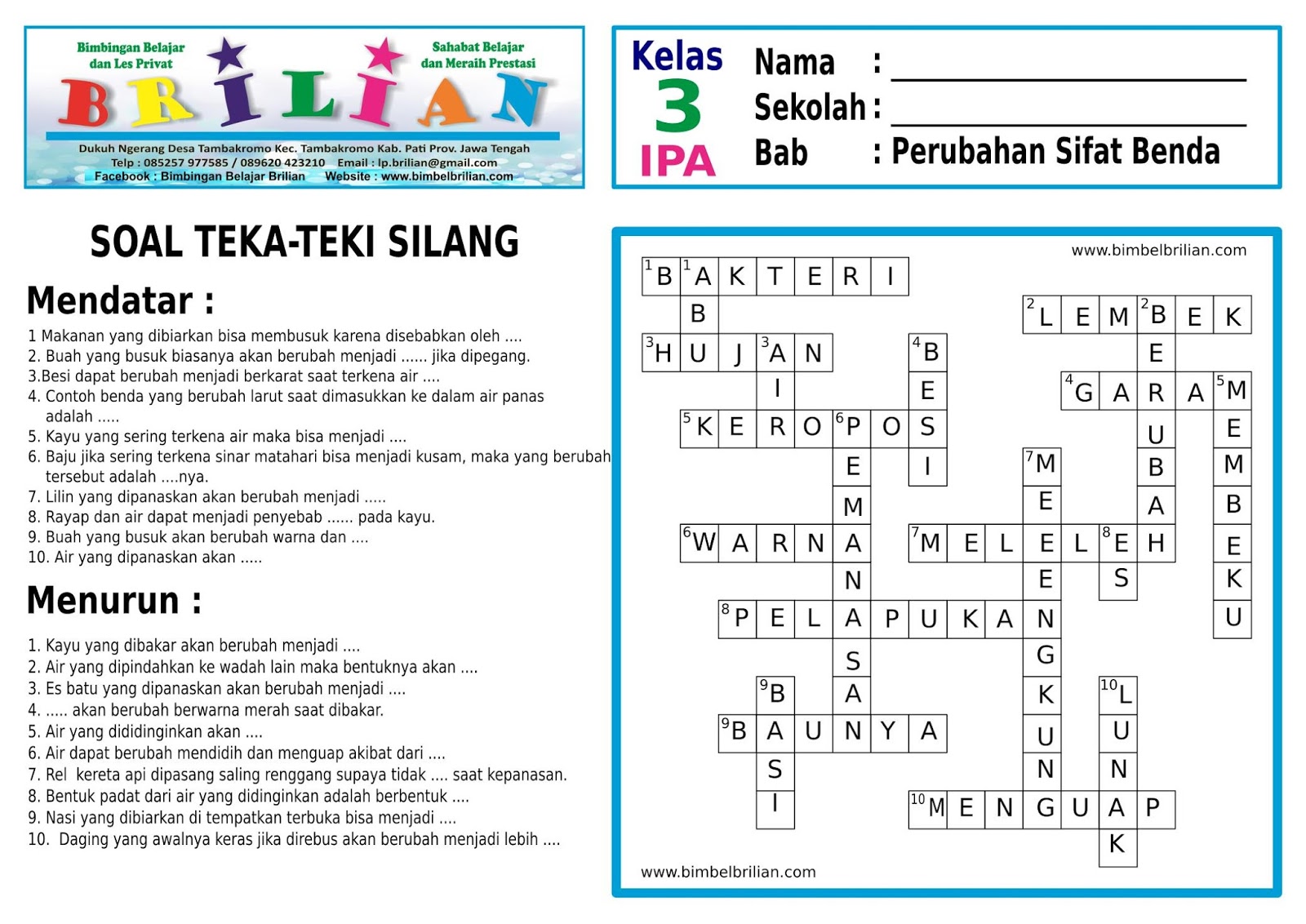Nah, para pembelajar cilik, kita sudah menjelajahi berbagai sifat benda yang ada di sekitar kita. Kita belajar tentang wujud benda (padat, cair, gas), kelenturan, kekerasan, kemagnetan, daya hantar listrik, dan daya hantar panas.