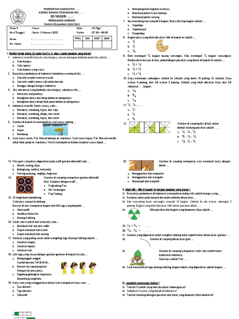 Penilaian Harian (PH) merupakan salah satu instrumen penting dalam proses pembelajaran di sekolah dasar. Melalui PH, guru dapat mengukur pemahaman siswa terhadap materi yang telah diajarkan, sekaligus memberikan umpan balik yang konstruktif untuk meningkatkan kualitas pembelajaran. Artikel ini akan membahas secara mendalam tentang cara membuat soal PH kelas 3 tema 1 yang efektif, menarik, dan sesuai dengan kurikulum yang berlaku.