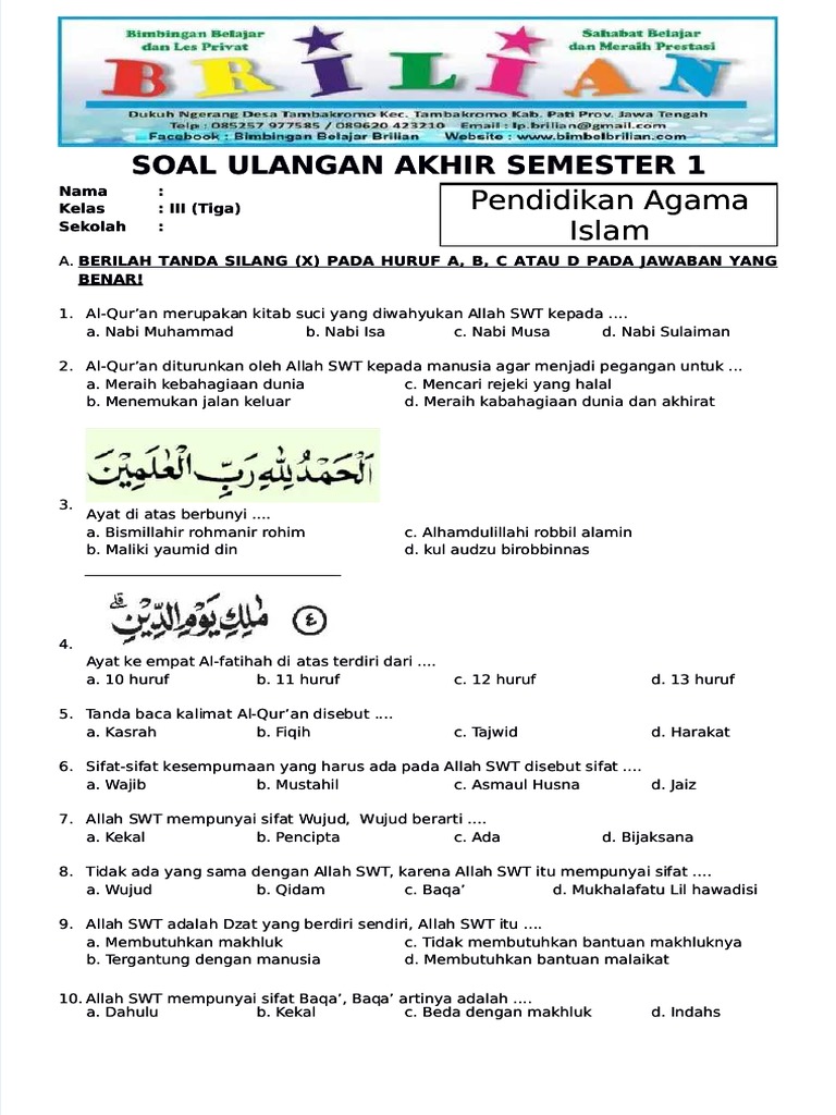 Menghadapi Ujian Akhir Semester (UAS) adalah momen penting bagi setiap siswa. Bagi siswa Kelas 3 Sekolah Dasar (SD), UAS Agama Islam tidak hanya menguji pemahaman materi, tetapi juga menanamkan nilai-nilai luhur yang akan menjadi bekal hidup mereka. Mempersiapkan diri dengan baik adalah kunci untuk meraih hasil yang optimal dan menumbuhkan rasa percaya diri. Artikel ini hadir untuk membantu para siswa Kelas 3 SD dan juga para pendidik serta orang tua dalam mempersiapkan diri menghadapi UAS Agama Islam, dengan menyajikan kumpulan soal yang relevan dan bervariasi.